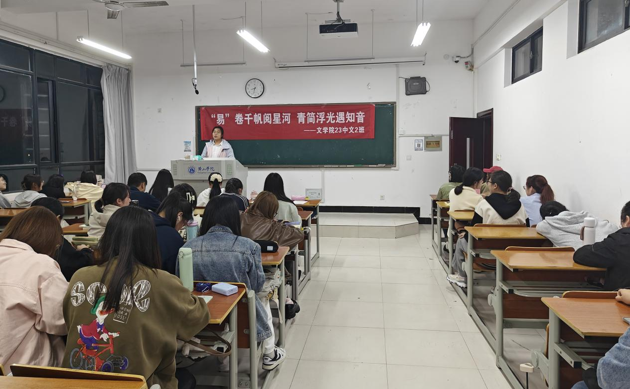 书页翻动间,思想的涟漪在青春的湖面上层层荡开。为培育同学们良好的阅读习惯,提升阅读兴趣,提高阅读品质,营造浓郁的书香氛围,打造优良班风,23中文2班于4月24日在文端楼2104教室举办“‘易’卷千帆阅星河,青简浮光遇知音——读书分享会活动”。
