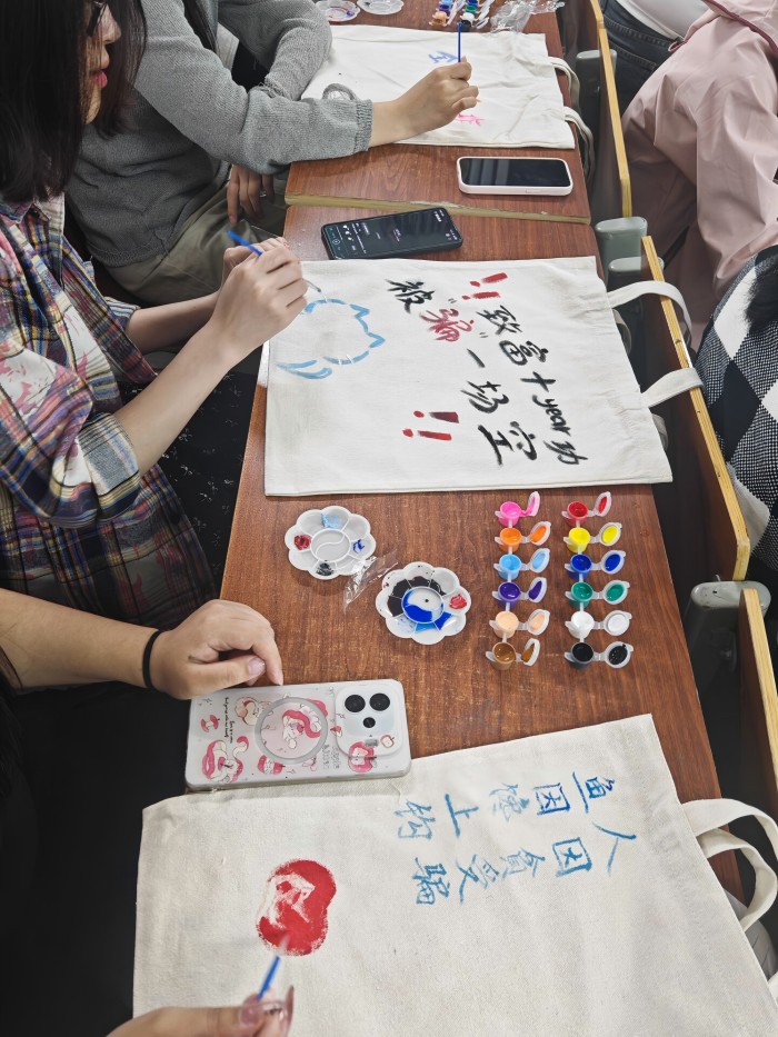 活动伊始,主讲同学结合真实案例,向大家揭露了常见诈骗手段的套路,生动还原了诈骗分子的话术和心理攻势,让同学们直观感受到诈骗的隐蔽性与危害性。活动中,同学们踊跃参与DIY帆布袋环节,通过自己设计图案、手绘宣传标语来表达对诈骗的理解,掌握了更多防骗技巧,纷纷表示今后会提高警惕,避免上当受骗。