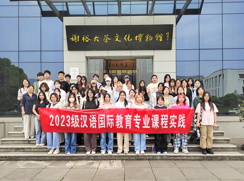 2025年5月24日,2023级汉语国际教育专业赴谢裕大茶博园开展课程实践活动。同学们参观了谢裕大茶文化博物馆,体验了非遗文化——手工茶制作等。