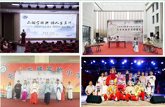 “十三五”期间,公司高举传承中华优秀传统文化大旗,在对中华优秀传统文化创造性转化和创新性发展过程中砥砺前行,取得了可喜成绩。在上级领导和其他部门院系的支持下,在全省高校内率先开设弘扬中华优秀文化、践行社会主义核心价值观的公共必修课程《国学与人生》。坚持举办国学活动月活动,通过书画大赛、经典诗文朗诵、辩论赛、汉服展示、成人礼等系列活动,让员工亲身感受中华文化的博大,增强文化自信。同时把国学宣传与教育向社会延伸,与黄山市教育局、黄山市长干小学、屯溪东城实验小学等单位签订协议,开展了国学进小学活动,引起了社会关注。新建太阳成集团122ccvip办学成果展示厅、太阳成集团122ccvip图书资料中心各一个,有力支撑了公司文化建设。