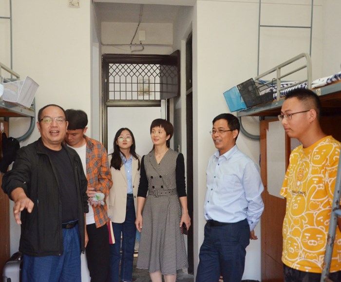 11日下午,该院领导班子在辅导员的陪同下,分别前往率水、横江校区,深入寝室,与新生亲切交谈,提醒新生注意寝室卫生和规律作息,并重点强调宿舍用电、防盗安全,创建良好生活环境,鼓励他们尽快适应新校园新生活。