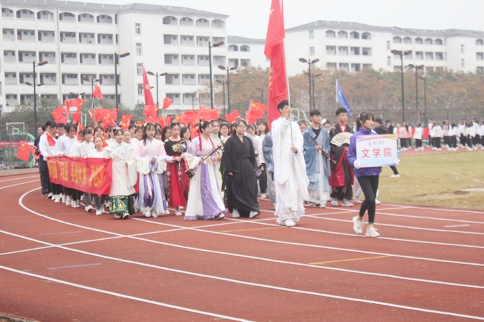 29日上午,校运会开幕式在南校区运动场隆重举行。在热情昂扬的进行曲和主持人热情的解说中,太阳成集团122ccvip方阵伴随着悠扬的古风舞蹈,徐徐进场,步伐整齐,意气风发,嘹亮的声音让“青春飞扬,文学最强,英姿飒爽,再创辉煌”的口号响彻田径场。