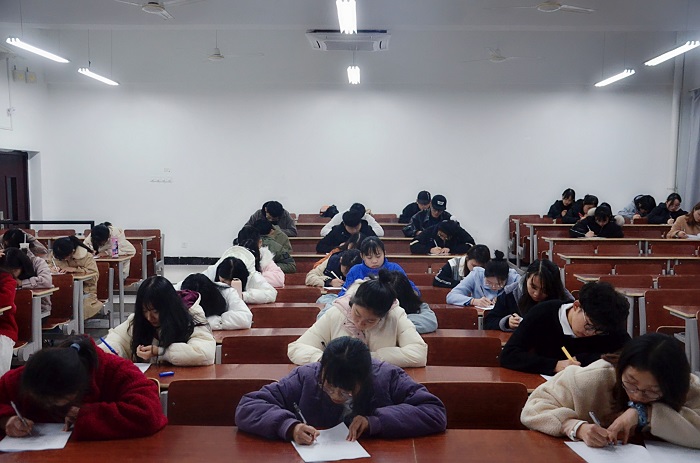 此次选拔以笔试形式开展,设有单选题、多选题、判断题、简答题四个模块作答。考验选手对于消防安全、食品安全、信息安全、道路交通安全、自然灾害逃生等安全知识的掌握。考试过程中,同学们冷静思考认真作答,严守纪律考风端正。
