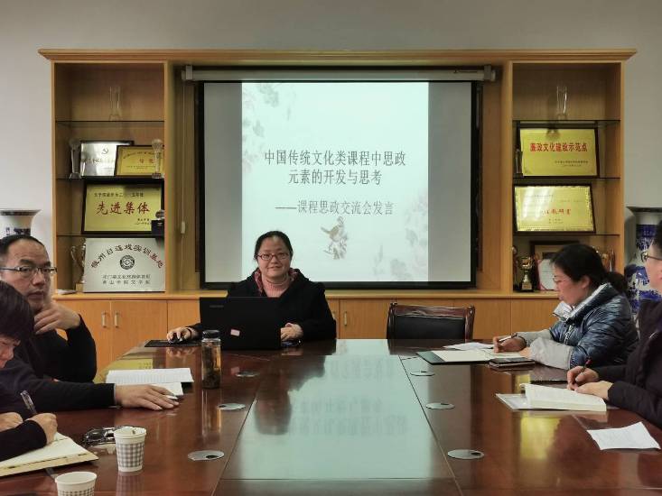 会上,汉语言文学专业杨辉、汉语国际教育专业王琳、文化产业管理专业陈玲等三位老师分别以《修辞学》《中国文文化史》《古代汉语》为例,围绕提高思想认识、挖掘课程思政元素、改进公司产品方式、完善考核评价体系等方面,分享了推进课程思政的经验与体会。