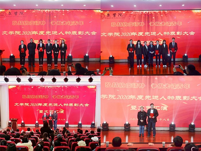 12月28日晚,2020年度先进人物表彰大会暨文艺汇演于文端楼二楼报告厅隆重举行。该院领导班子、教师代表、全体专职辅导员及员工代表共300余人参加了此次活动。