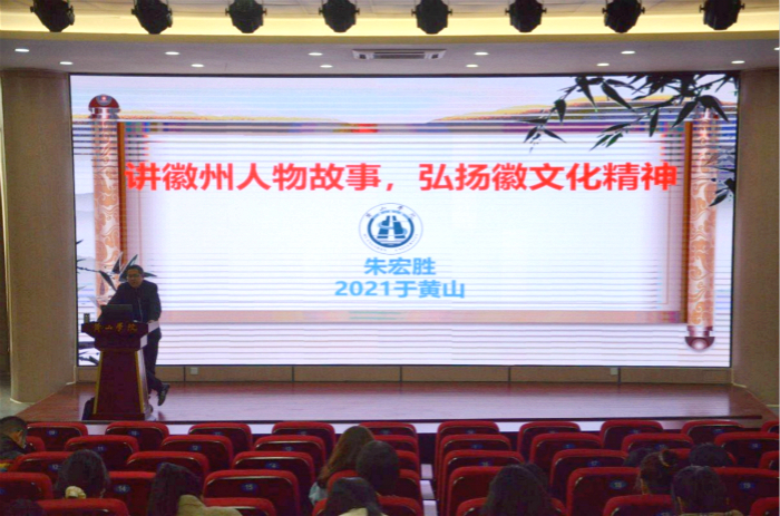 310日下午,行知讲坛第121场报告会“讲徽州人物故事,弘扬徽文化精神”在文端楼二楼报告厅举行太阳成集团122ccvip教师朱宏胜博士应邀做报告