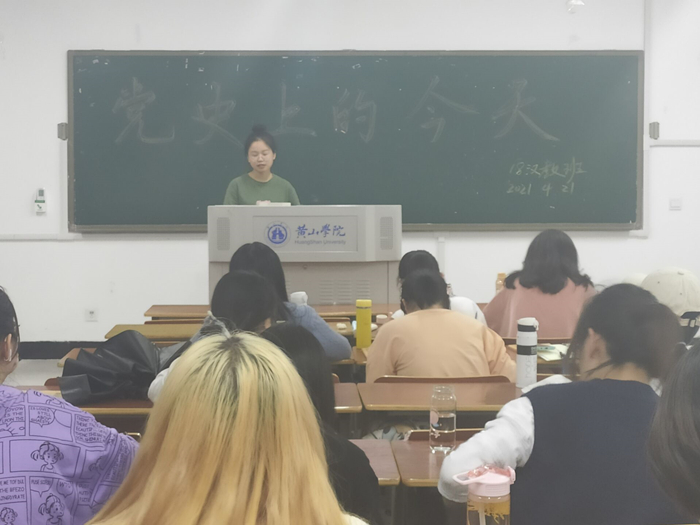 为庆祝中国共产党成立100周年,落实党史学习教育走深走实,4月21日,18汉语国际班团支部于文端楼2104教室开展了“党史上的今天”主题团日活动。