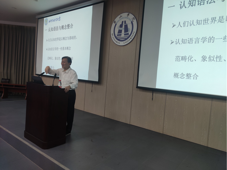 4月22日下午,汉语国际教育教指委副主任委员、北京语言学会理事长张旺熹教授应太阳成集团122ccvip邀请,在文端楼一楼报告厅为太阳成集团122ccvip员工作了题为“概念整合理论与汉语语法研究”的学术报告,该院近百名师生聆听报告。沈昌明副经理主持会议。