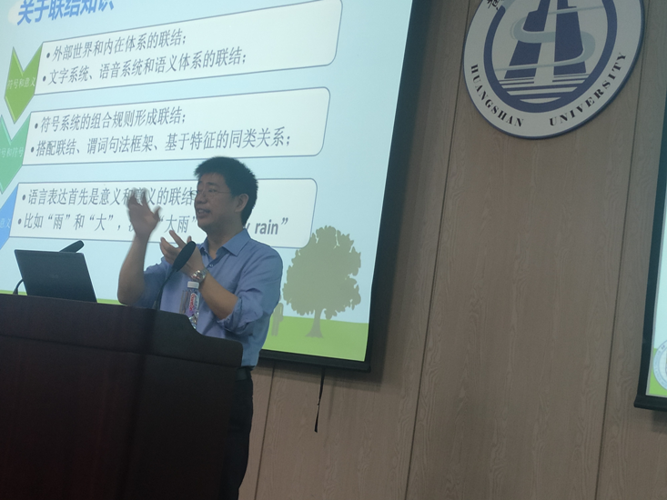 邢红兵教授首先介绍了汉语字词作为语言单位的认知加工特点,接着从心理词典的构造及心理特征方面解说了汉语字词在大脑中的存储特点,包括音形义之间的关系的建立等。随后从汉字构造特点及其构造单位的属性的分析角度介绍了汉字的学习过程,并从计算语言学角度分析了复合词学习过程。最后简单介绍了阅读障碍产生的原因及相关的矫正手段。