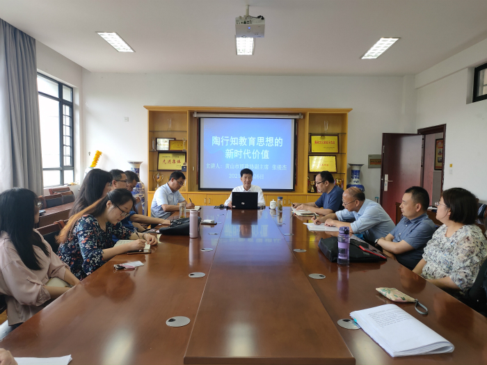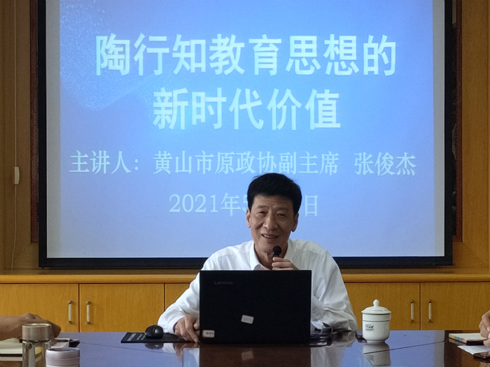 5月26日下午,太阳成集团122ccvip客座教授、原黄山市政协副主席张俊杰应邀为太阳成集团122ccvip教师作“陶行知教育思想的新时代价值”的专题报告,副经理沈昌明主持报告会。