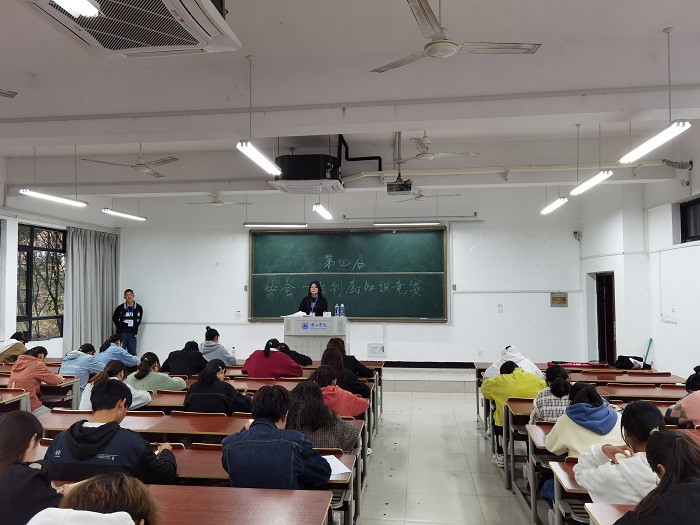 此次竞赛选拔以笔试的形式开展,内容主要涉及消防安全、道路交通安全、食品安全、信息网络安全、公共场所安全、自然灾害逃生自救等安全知识。开考前,工作人员上台说明此次考试规则及注意事项。考试过程中,同学们认真作答,态度端正,考风严肃。工作人员认真监考,考场纪律严明。