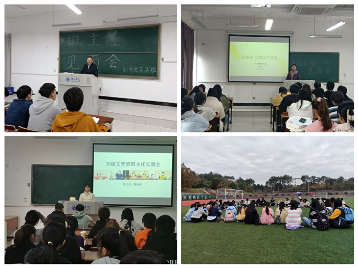 21中文班新生班主任杨辉老师以“为什么要读书”话题展开,结合生活现象,向同学们展示学习的力量和价值。教导同学们要努力学好专业知识,做好学习规划,不断开阔自己的视野。21汉教班新生班主任芦洁媛老师则从自身求学经历帮助同学们要制定好明确的学习和生活目标,更快的适应老员工活,对未来要充满希望和信心,勇敢的迎接各种挑战。20汉教班班主任朱丽娟老师在率水校区第二田径场开展了一次别开生面的班主任见面会,拉近了员工与班主任的距离,鼓励同学们应做好学习规划,摆脱迷茫,让老员工活更加丰富多彩。其他各班级班主任也纷纷深入班级走近员工,详细了解员工目前的学习和生活情况,引导员工要学做人,学常识,学本领,努力成为有理想、有本领、有担当的新时代青年。