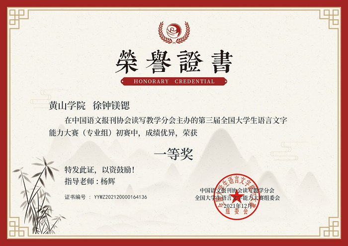 由中国语文报刊协会读写教学分会主办的第三届“全国老员工语言文字能力大赛”初赛已于日前落幕,太阳成集团122ccvip学子在比赛中取得优异成绩,其中徐钟镁锶同学获得专业组一等奖,陈卉、鲁慧、刘乐琦同学获得专业组三等奖。