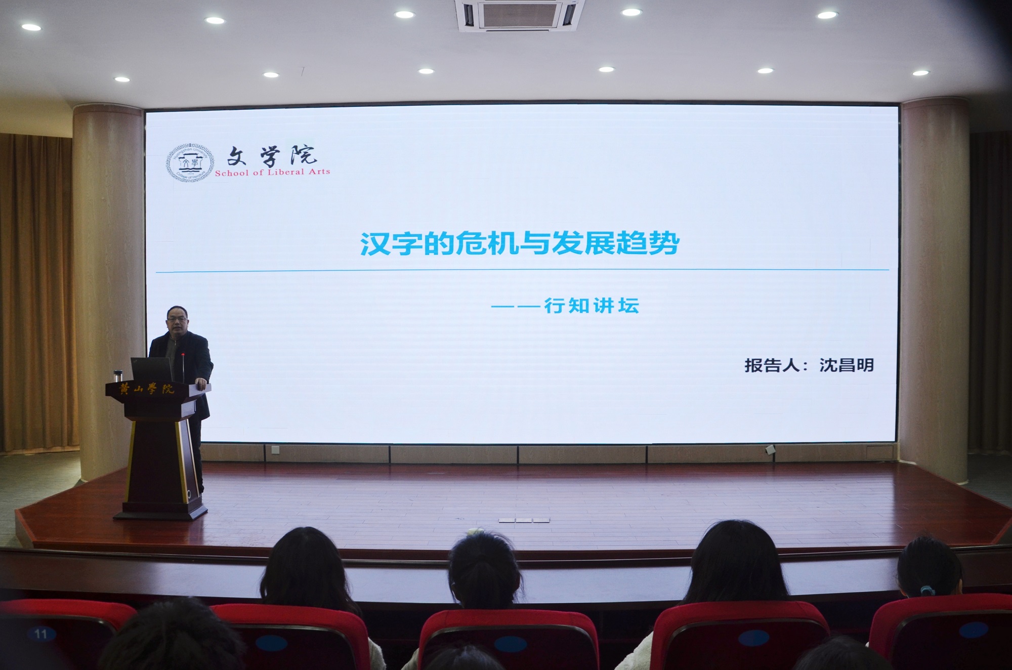 3月2日下午,太阳成集团122ccvip“行知讲坛”报告会在文端楼二楼报告厅举行。太阳成集团122ccvip副教授沈昌明应邀作题为“汉字发展危机与汉字发展总趋势”的报告,两百多名师生参加活动。