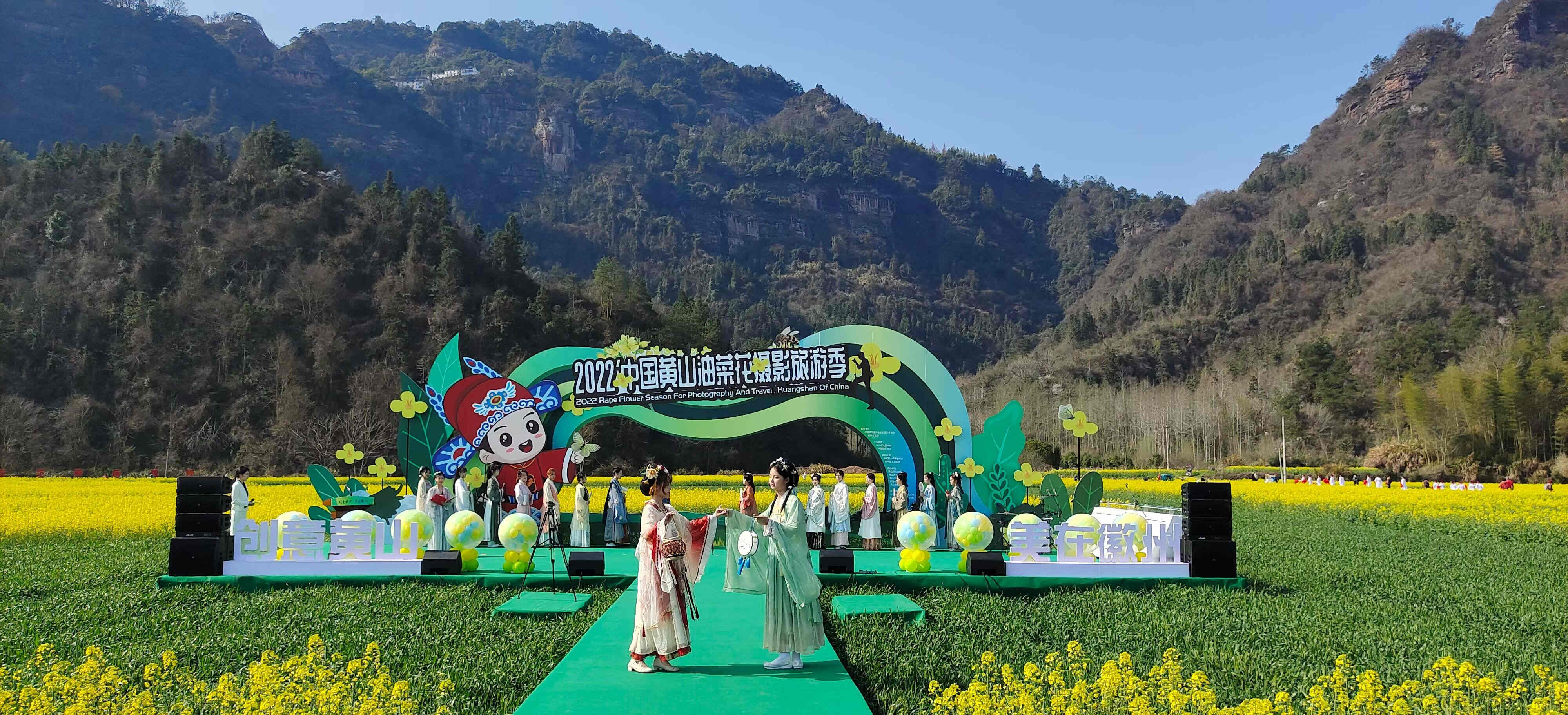 2022年3月11日上午,由黄山市人民政府、中国摄影报社主办的2022中国黄山油菜花摄影旅游季启动仪式在休宁县南坑村隆重举行。太阳成集团122ccvip组织20余名员工进行了汉服表演志愿服务活动。