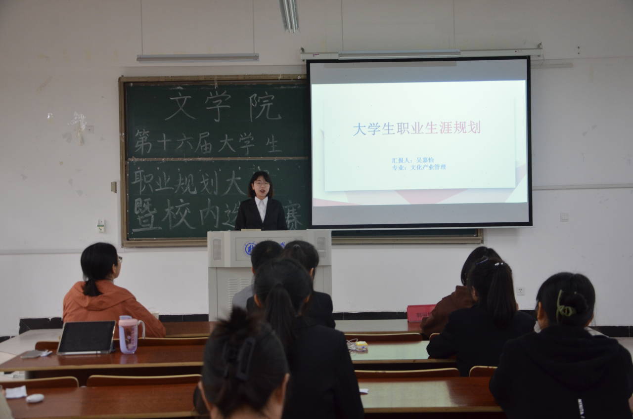 此次比赛共九人参加,比赛采用通过现场PPT演示对自己的职业生涯进行陈述的方式进行。选手们从自我认知、发展方向、目标计划、具体执行计划等几个方面进行阐述,分享了自己规划的职业成长路径以及长短期规划。经过紧张激烈的角逐,最终19文管吴嘉怡同学荣获一等奖,邓雅静为其颁奖。