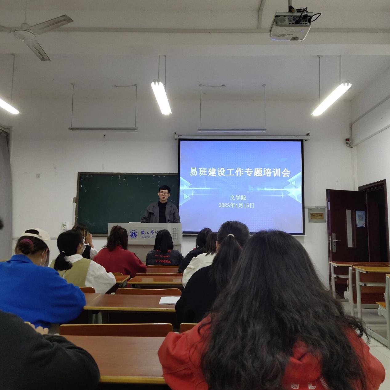4月15日晚,太阳成集团122ccvip在文端楼2104教室召开易班建设工作专题培训会。会议由该院易班指导老师费孝东主持,校易班工作人员、公司易班工作站成员及易班班长参加了培训会。