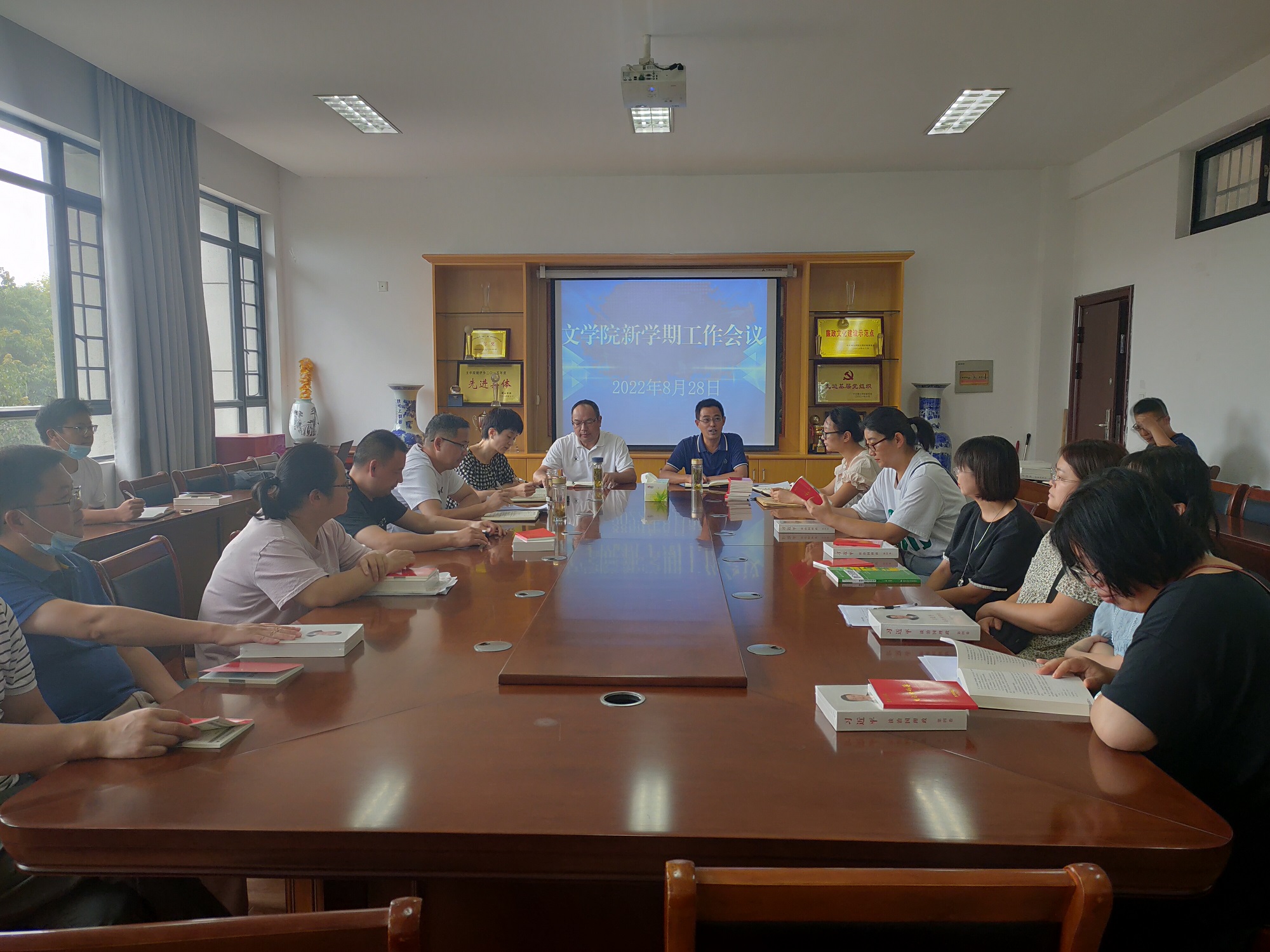 8月28日下午,太阳成集团122ccvip在文端楼二楼会议室召开新学期工作部署会,公司全体教师参加会议,会议由该公司党总支书记汪方学主持。
