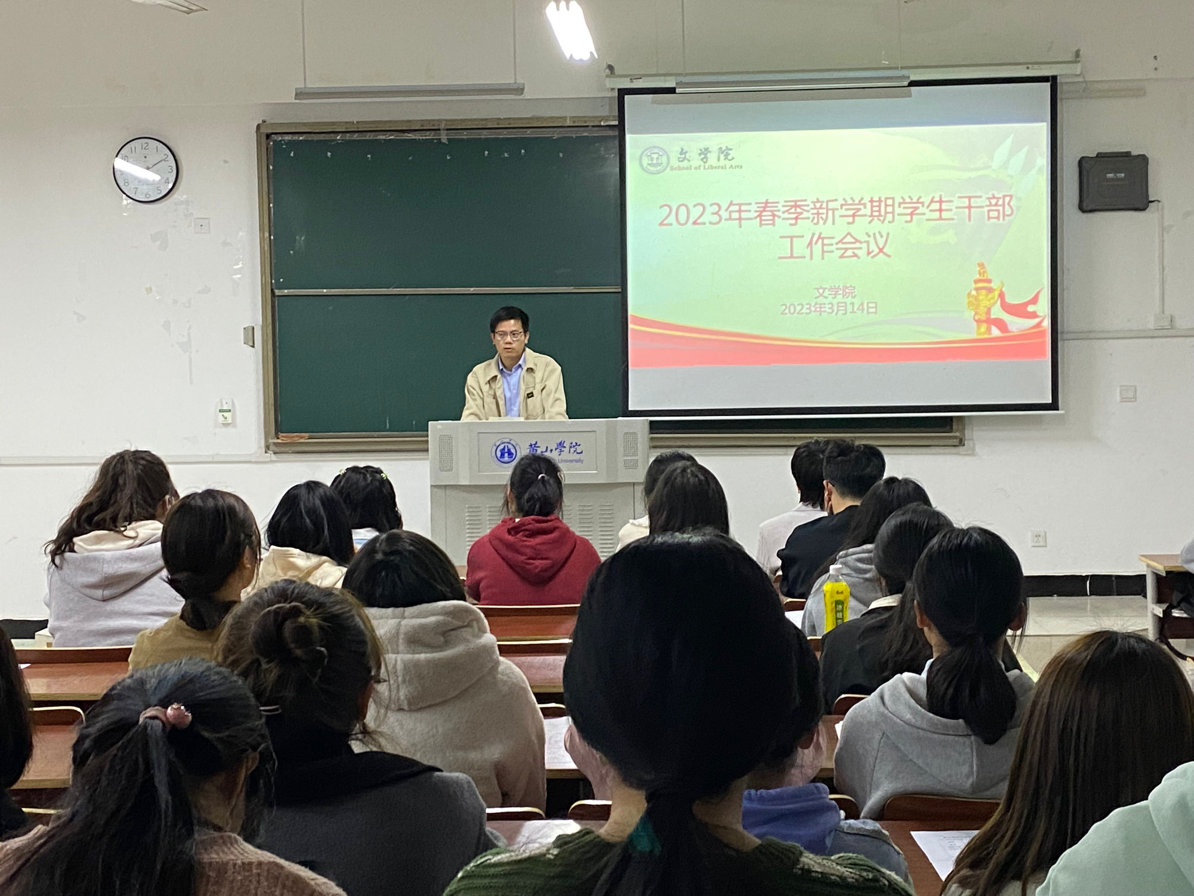 新学期新征程,为推动公司员工工作顺利开展,3月14日晚,我院在文端楼2206教室召开新学期员工干部会议。公司党总支副书记周志荣出席会议,院团总支负责人王星勇主持会议。