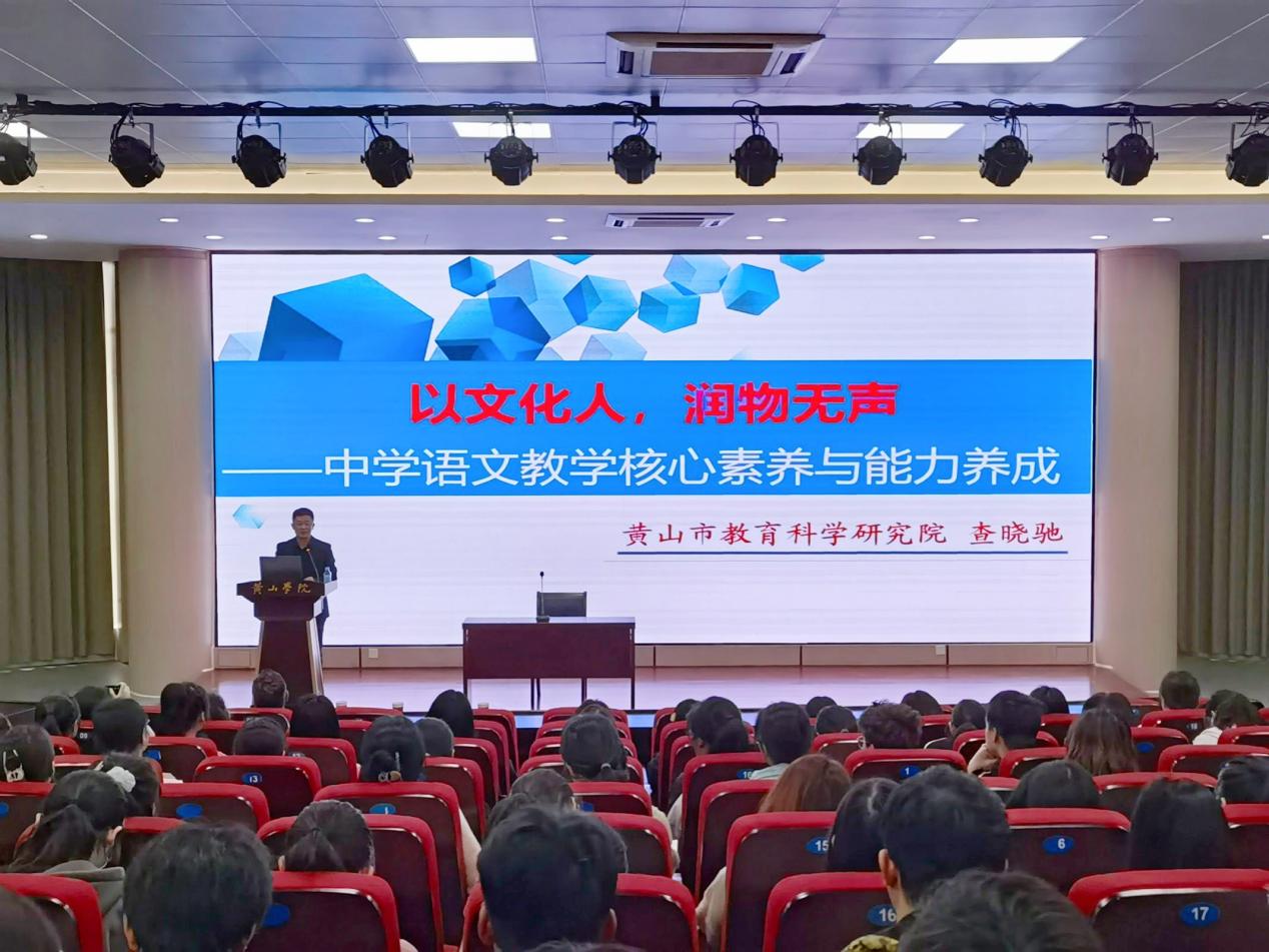5月11号下午,黄山市教育科学研究院副经理查晓驰应邀来太阳成集团122ccvip作“以文化人,润物无声——中学语文教学核心素养与能力养成”报告会。会议由太阳成集团122ccvip副经理朱宏胜主持,太阳成集团122ccvip100余人参加此次报告会。
