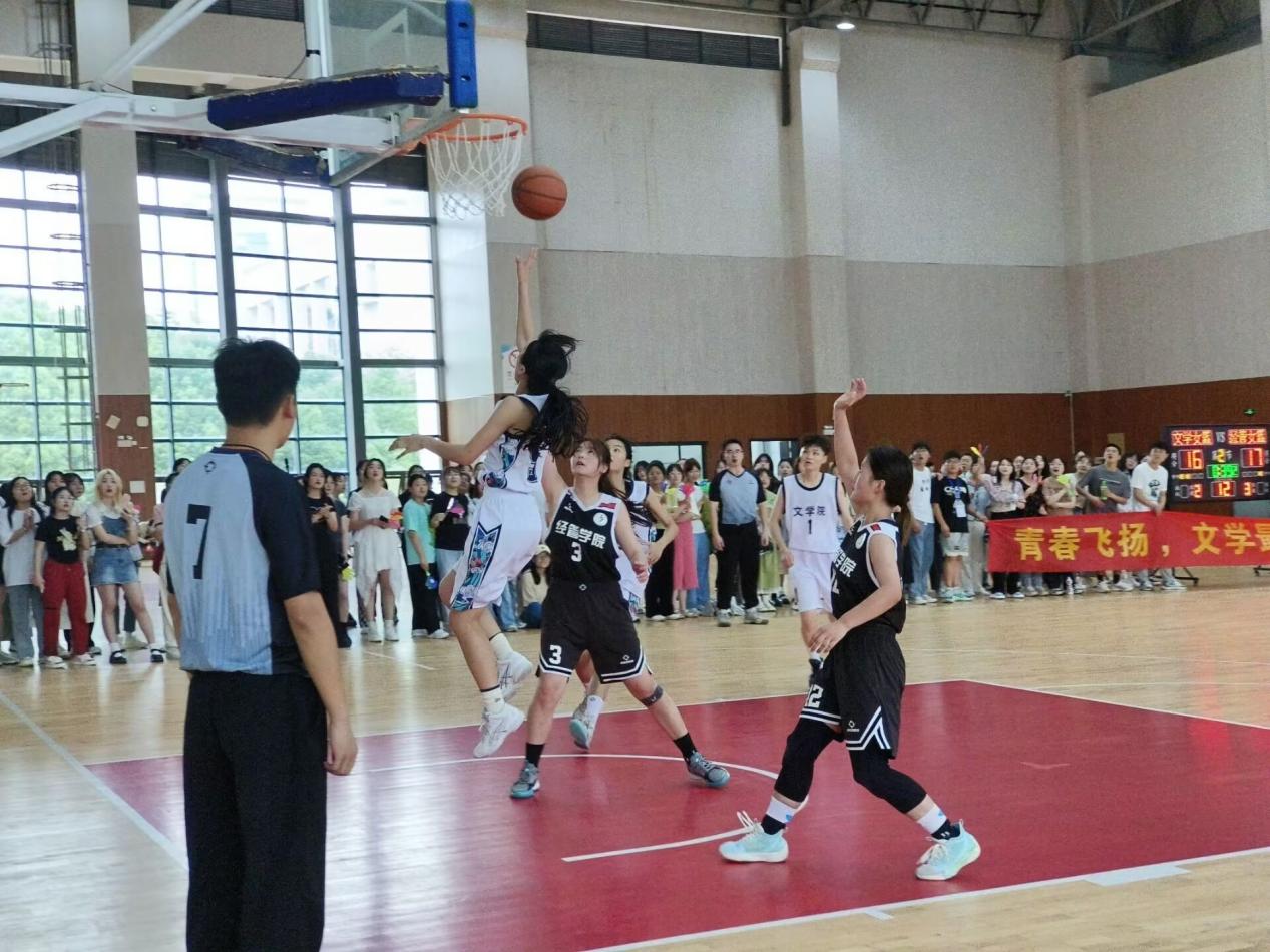 太阳成集团122ccvip女篮自小组赛以来过关斩将,屡战屡胜,在总决赛上,太阳成集团122ccvip女篮对战经济管理公司女篮,面对对手强攻,太阳成集团122ccvip女篮迅速调整心态,从上半场落后到下半场大比分领先对手,赢得了在场观众的广泛赞誉和阵阵掌声。比赛过程中,太阳成集团122ccvip女篮配合默契,有序组织进攻和防守,精彩的快攻、妙传、抢篮板使球赛高潮迭起。现场气氛十分热烈,太阳成集团122ccvip啦啦队“青春飞扬,文学最强;英姿飒爽,再创辉煌”的口号响彻场馆,太阳成集团122ccvip全体领导班子成员也到场为女篮姑娘们加油助威。