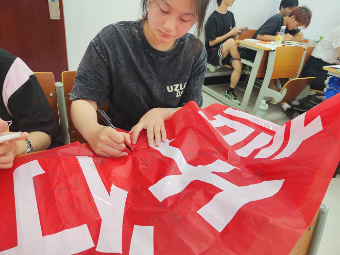 组织同学们签订《诚信承诺书》,在宣传横幅上郑重写上自己的名字,让员工对申请助学金时所提供的材料真实性等方面作书面承诺,增强仪式感。