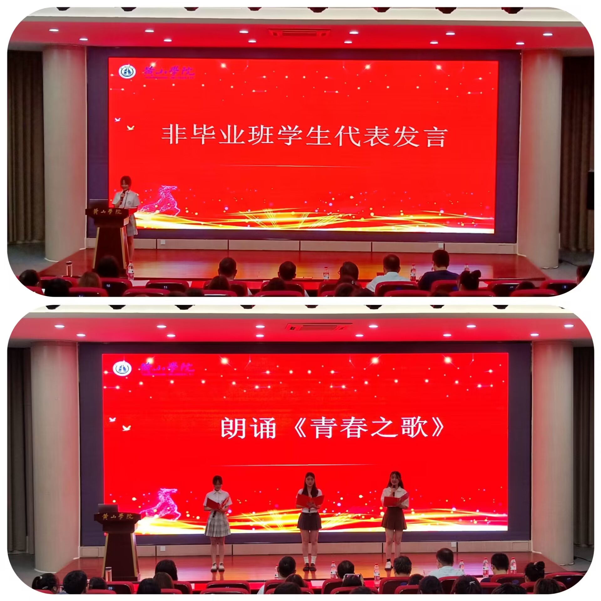 非毕业生代表22级中文1班朱雅琪上台发言。她向即将离开母校,步入社会的学姐学长表示由衷的祝贺,同时也向为员工的成长倾注了无数心血的老师表达深深的敬意,并祝愿学长学姐们都能在自己热爱的领域闪闪发光,在今后的日子里一帆风顺、前程似锦。
