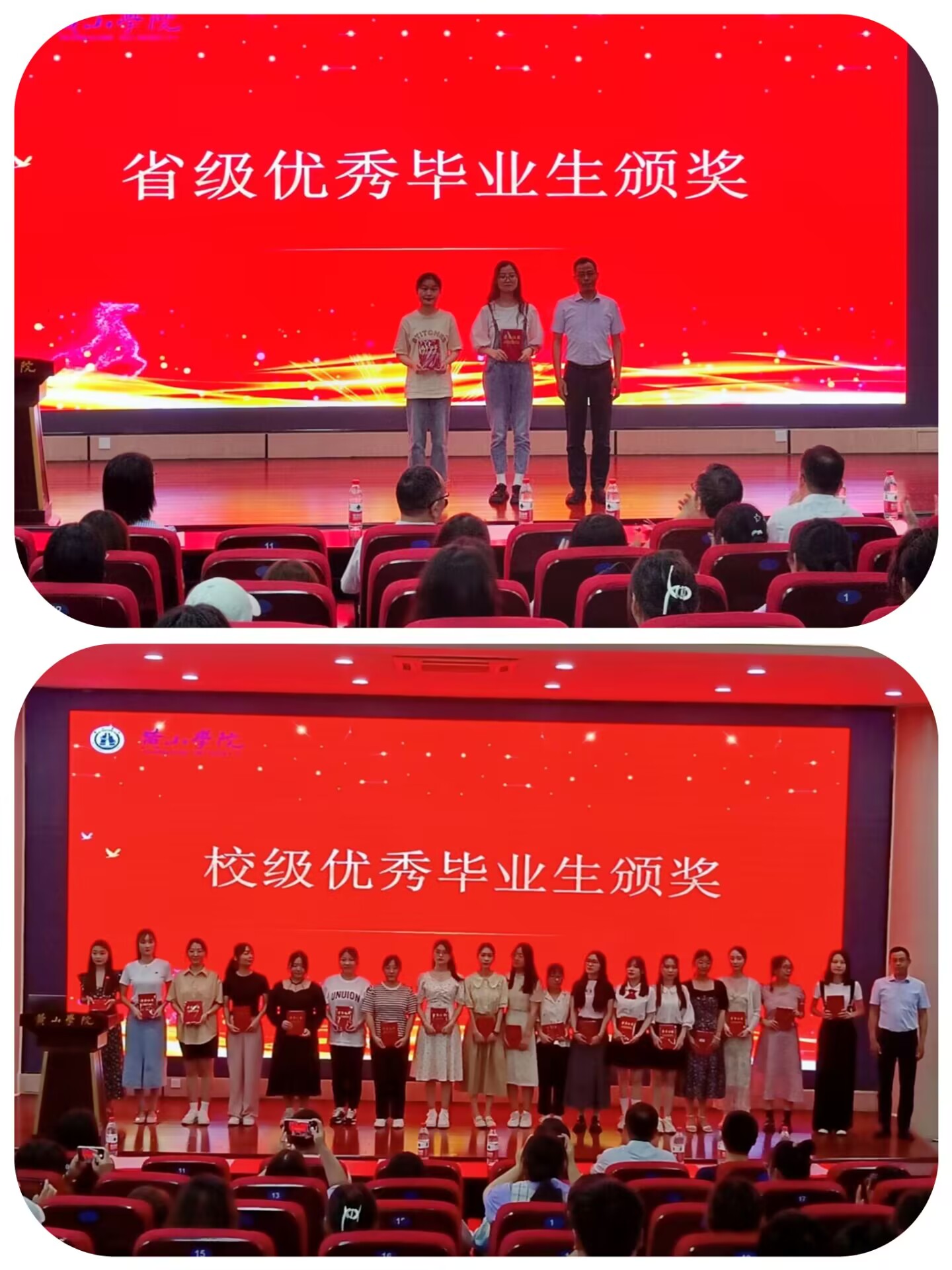 毕业典礼在雄壮的国歌中拉开帷幕,首先,副经理朱宏胜宣读2023届毕业生文件、2023届省级、校级优秀毕业生名单,党总支书记汪方学为省校两级优秀毕业生颁发荣誉证书。