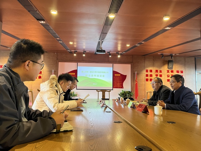 12月1日,公司党总支书记汪方学、经理沈昌明、副经理朱宏胜率校企合作实践教学团队成员赴徽州区谢裕大茶叶股份有限公司洽谈校企合作业务。谢裕大茶叶股份有限公司总经理、法人代表谢明之、总经办主任于文明等热情接待。