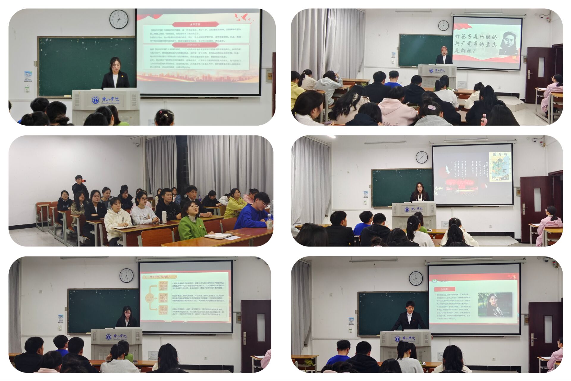 线下活动由王琼老师主持。员工党员和积极分子代表手持红色经典书籍,深情分享了自己的阅读感悟。“红星闪闪放光彩,红星灿灿暖胸怀”,王烁同学分享的《闪闪的红星》,讲述了潘冬子用智慧与勇气来投身革命的“追光”之旅,告诉我们要为理想而奋斗,不怕困难,始终保持信念和坚持。孔滢同学带来《红日》,该书讲述故事以军长沈振新、政委丁元善所率领的一支部队为主线,环绕着山东战场上著名的莱芜、孟良崮两大战役,描绘了波澜壮阔的战斗场面和可歌可泣的英勇事迹,警醒我们美好生活是革命先烈用鲜血换来的,和平来之不易,要珍惜当下。卞杰同学阅读的《南京大屠杀》是一部血与火的历史,它真实揭露了日本侵略者的暴行,提醒我们铭记历史,知耻而后勇。此外,入党积极分子娄明秋、殷伊璇同学分别讲述的是《为什么是中国》和《红岩》,让在场的师生对党的历史和红岩精神有了更加清晰的认识。