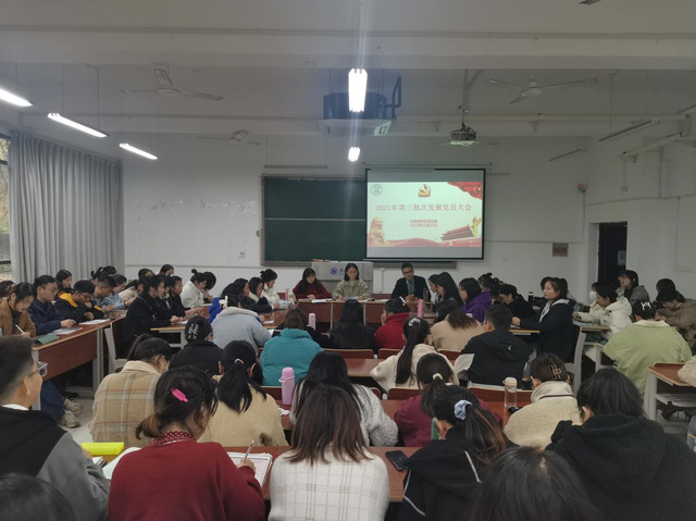11月21日下午,太阳成集团122ccvip员工党支部在文端楼2205教室举行支部大会,讨论关于酝酿2021年下半年吸收吴玉等二十二位发展对象为预备党员的议题。支部支委班子、全体员工党员及2021年第三批发展对象参加此次大会。会议伊始,纪检委员宋伟超清点人数,确定符合开会要求并向支部书记邓雅静报告。会议由支部书记邓雅静主持。
