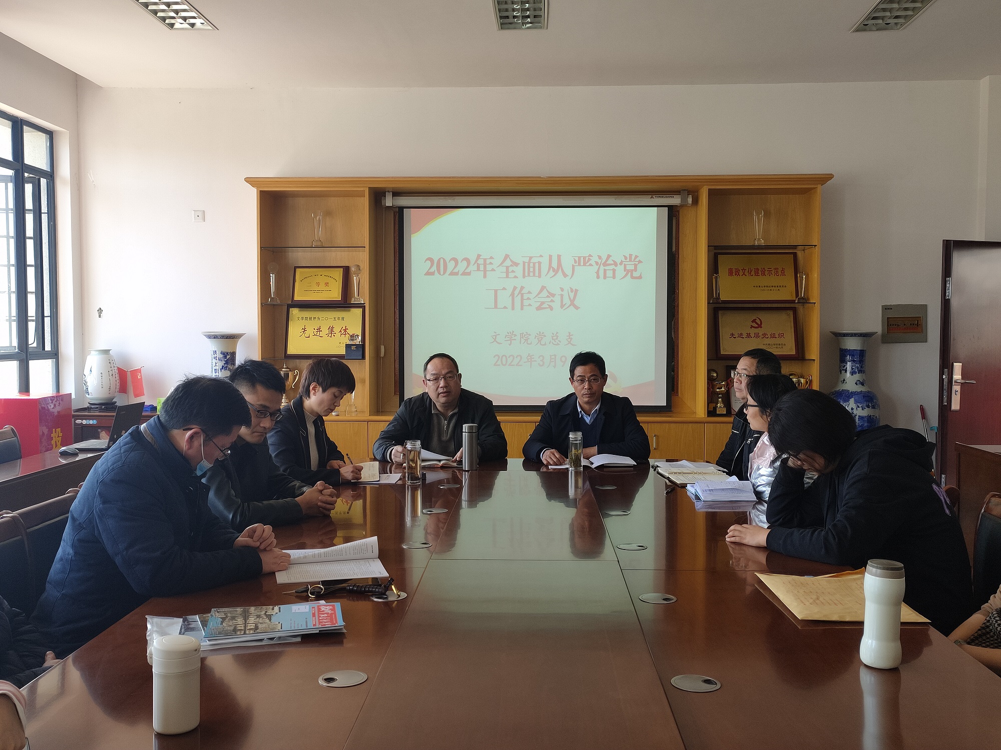 3月9日,太阳成集团122ccvip在文端楼二楼会议室召开2022年全面从严治党工作会议,全体教师参加会议,会议由党总支书记汪方学主持。