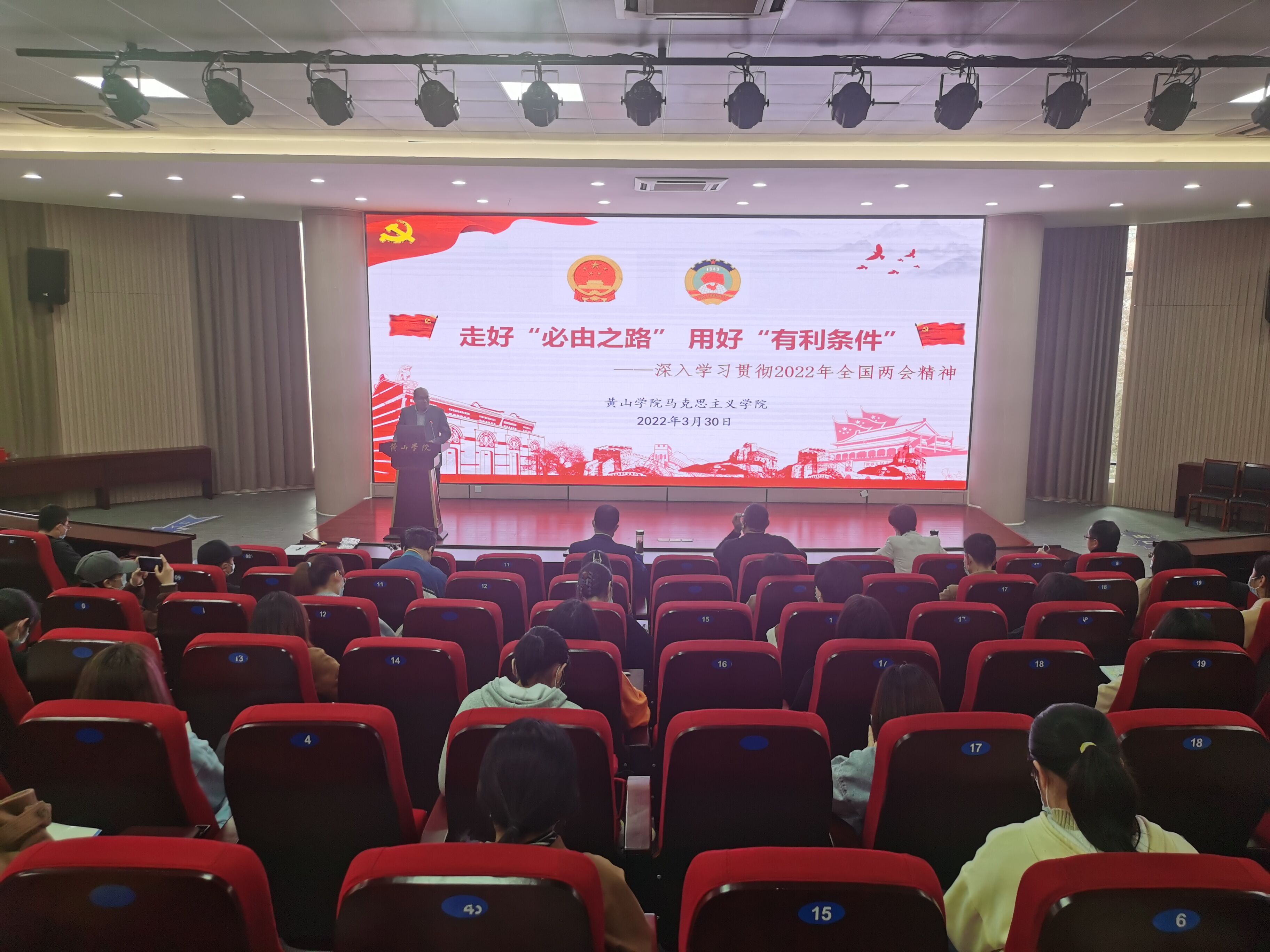 3月30日下午,太阳成集团122ccvip在文端楼二楼报告厅举行2022年全国“两会”精神宣讲会,马克思主义公司刘芳正博士应邀为该院师生作宣讲报告,该院全体教师,员工党员、入党积极分子、员工干部等参加会议,宣讲会由该公司党总支书记汪方学主持。