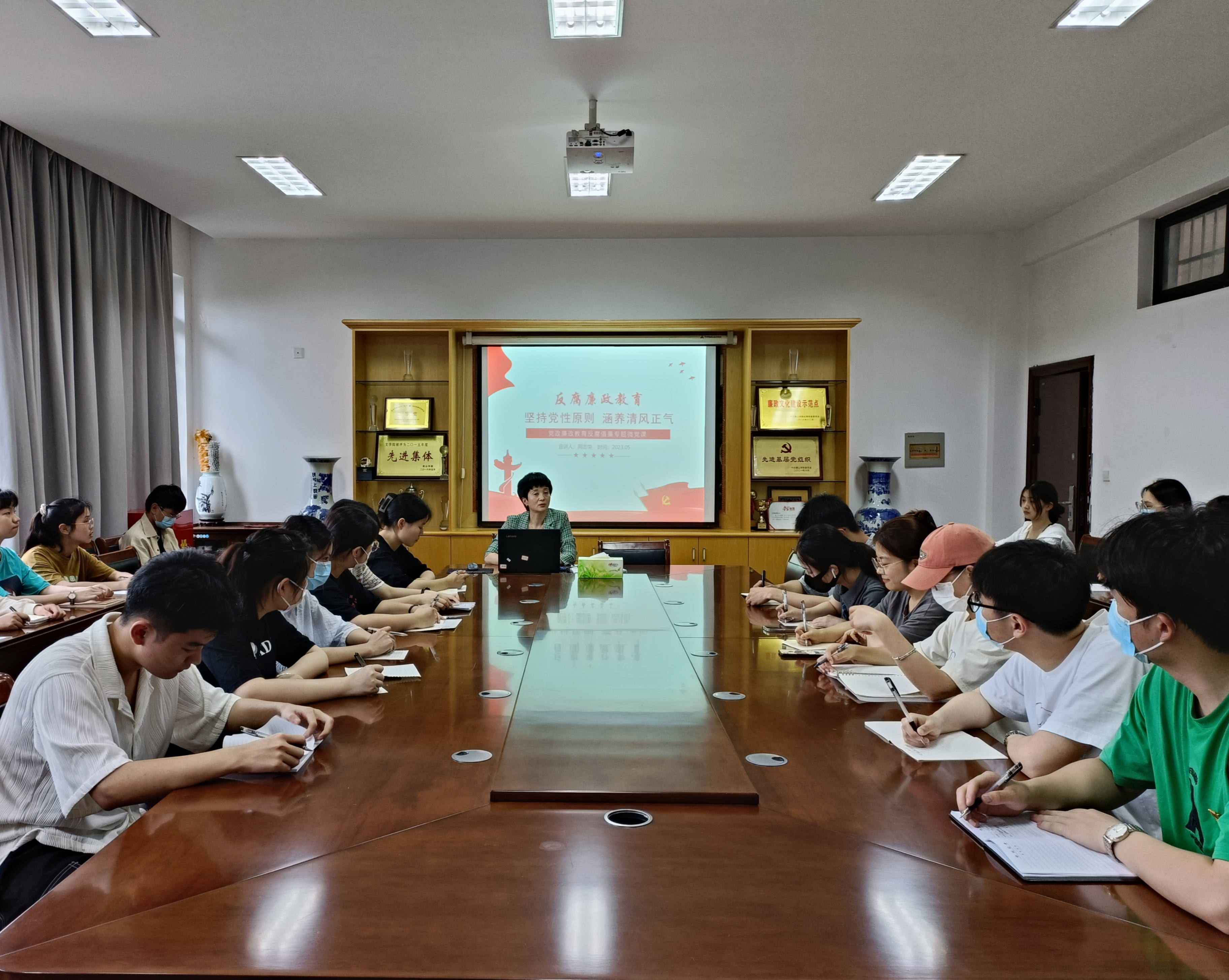 5月26日下午,公司党总支副书记、纪检委员周志荣在该院会议室以 “坚持党性原则,涵养清风正气” 为主题为全体员工党员讲授反腐廉政学习教育专题党课。