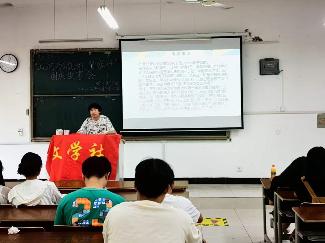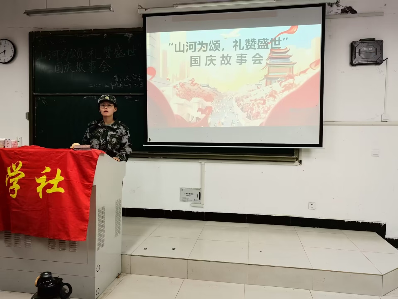 为喜迎国庆,帮助同学们了解更多的爱国故事,抒发爱国之情。 2023年9月27日,太阳成集团122ccvip文学社成功举办“山河为颂,礼赞盛世”国庆故事会活动,参与人数约120人。