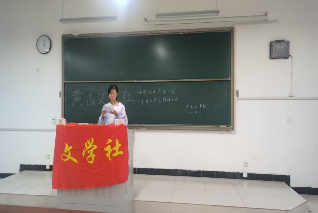 为传承传统文化,陶冶情操,拓宽同学们的视野,进一步构建良好的校园文化氛围。2023年11月10日,由黄山文学社主办,青鸟爱心协会协办的“诵读经典,品味书香”中华经典诗文朗诵活动圆满完结,活动参与人数约120人。