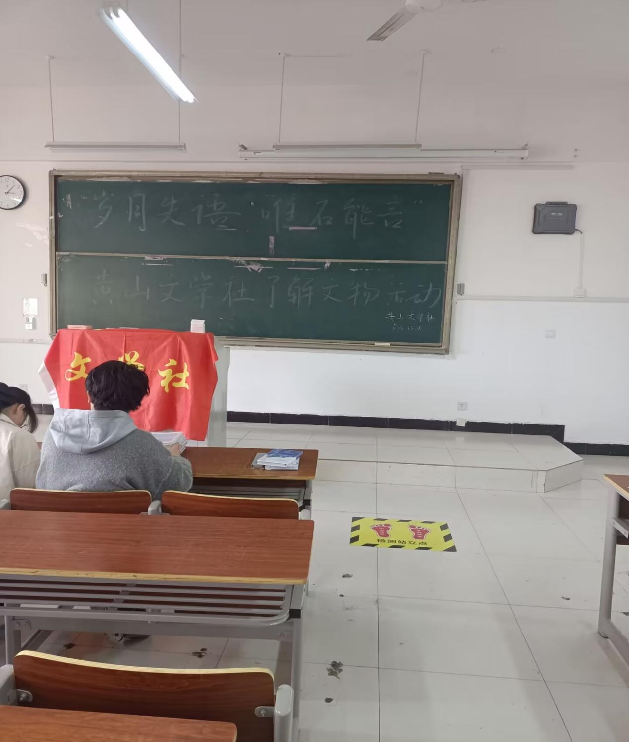 为了丰富同学们的课余生活,更好地了解历史文化、培养审美情趣并拓宽视野。2023年12月13日,由黄山文学社主办,汉文化阁协办的“岁月失语,唯石能言”了解文物活动圆满落幕,参与人数约120人。