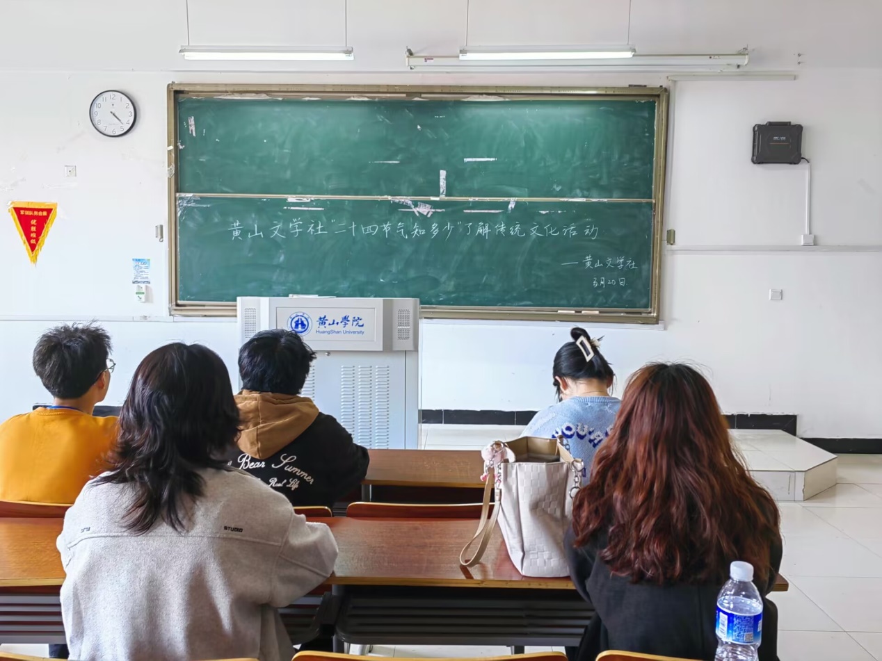 为丰富同学们的课余生活,更好地了解中华传统农耕文化、增强民族自信心并拓宽视野,也有助于构建良好的校园文化氛围。2024年3月20日,由黄山文学社主办,徽州学社协办的“二十四节气知多少”了解传统文化活动圆满完结,参与人数约120人。