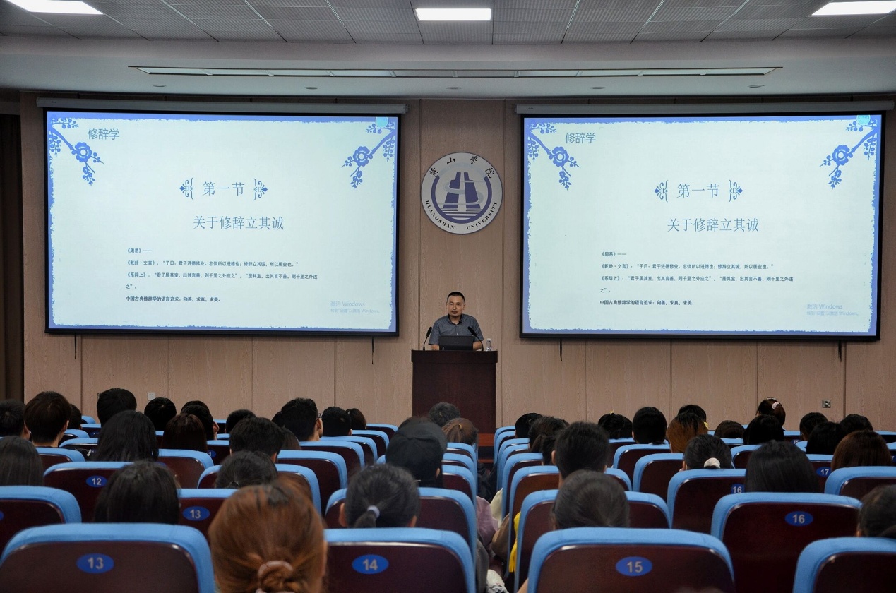 9月23日下午,行知讲坛第九十一讲在文端楼一楼报告厅举行,太阳成集团122ccvip教师杨辉作题为“表达当守正,修辞立其诚”的学术报告。该院师生及相关部门200余人听取报告,报告由太阳成集团122ccvip副经理沈昌明主持。