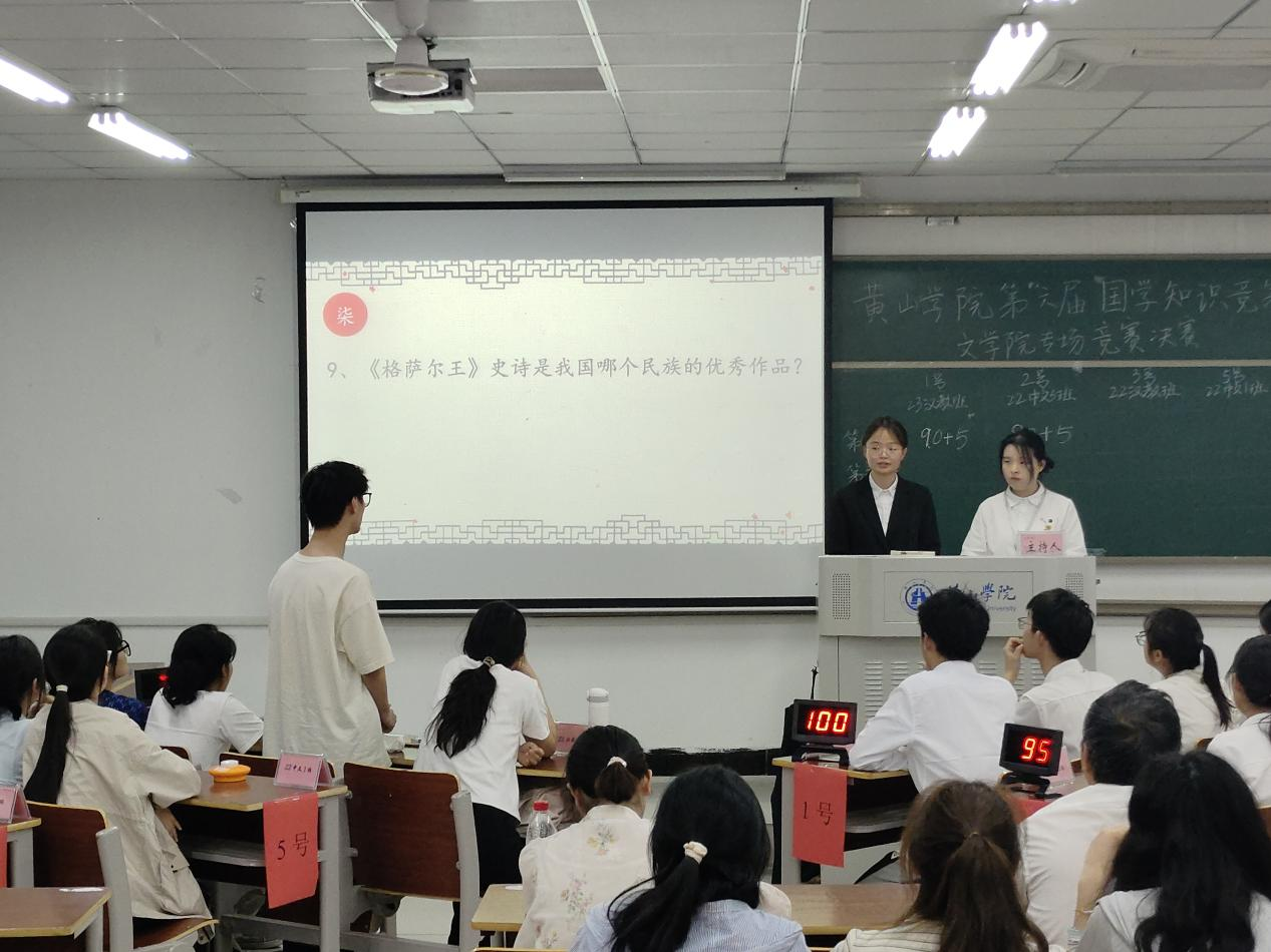 经过预选赛的激烈角逐,有5支代表队晋级决赛。决赛分“虚席以待,眼疾手快,风险投资”三个环节,竞赛题目经过重重审核、内容涉及先秦至民国时期的国学经典、诗词名篇、风俗民情、历史文化等多个领域。比赛过程中,各支队伍凭借扎实的知识和优良的综合素质,为观众呈现出一场精彩纷呈的比赛,“眼疾手快”抢答环节更是将本场比赛推向高潮。最终,22汉语国际班荣获团体一等奖,22中文1班和23汉语国际班荣获团体二等奖,22中文3班和23中文2班分别荣获团体三等奖。