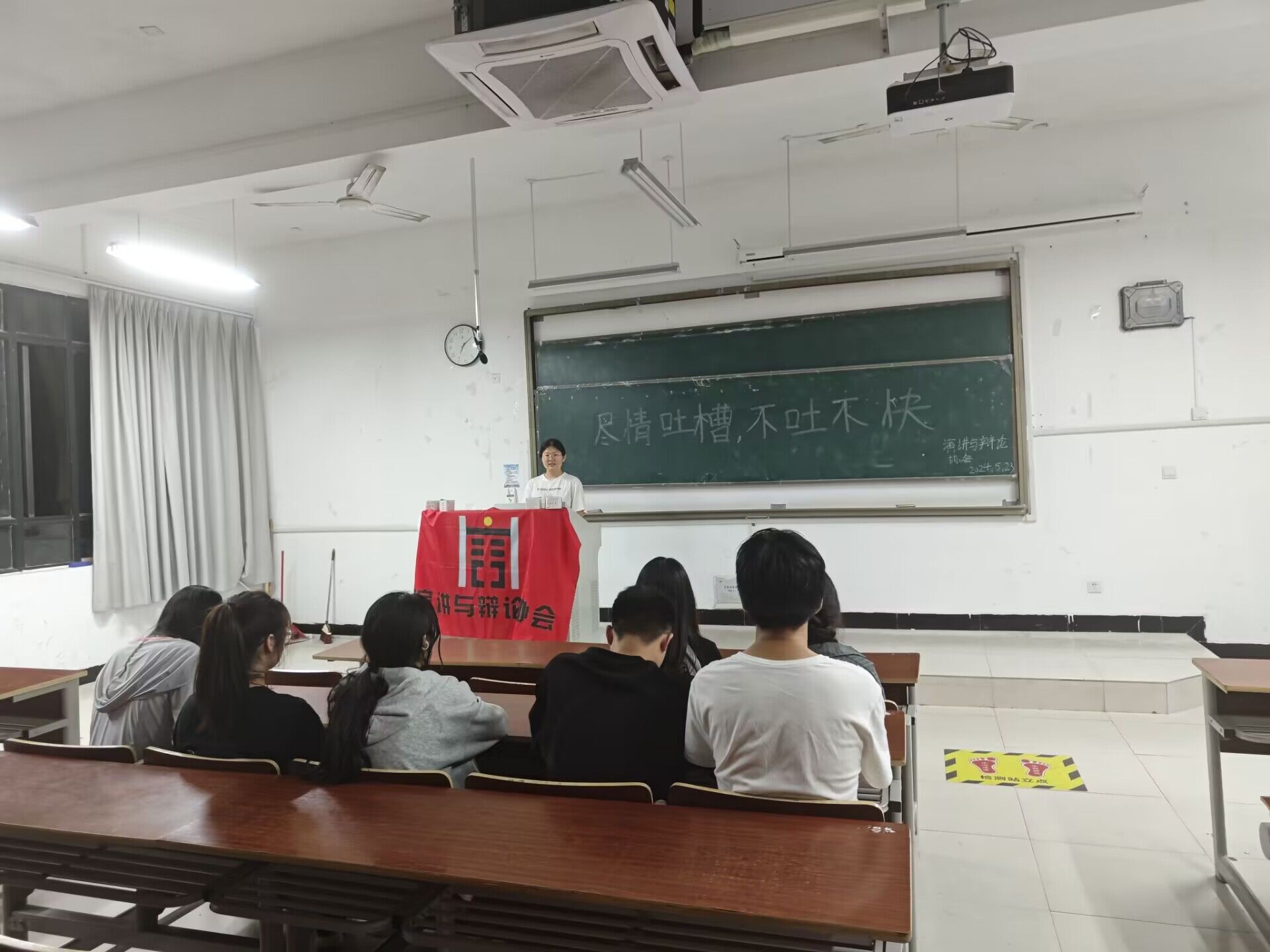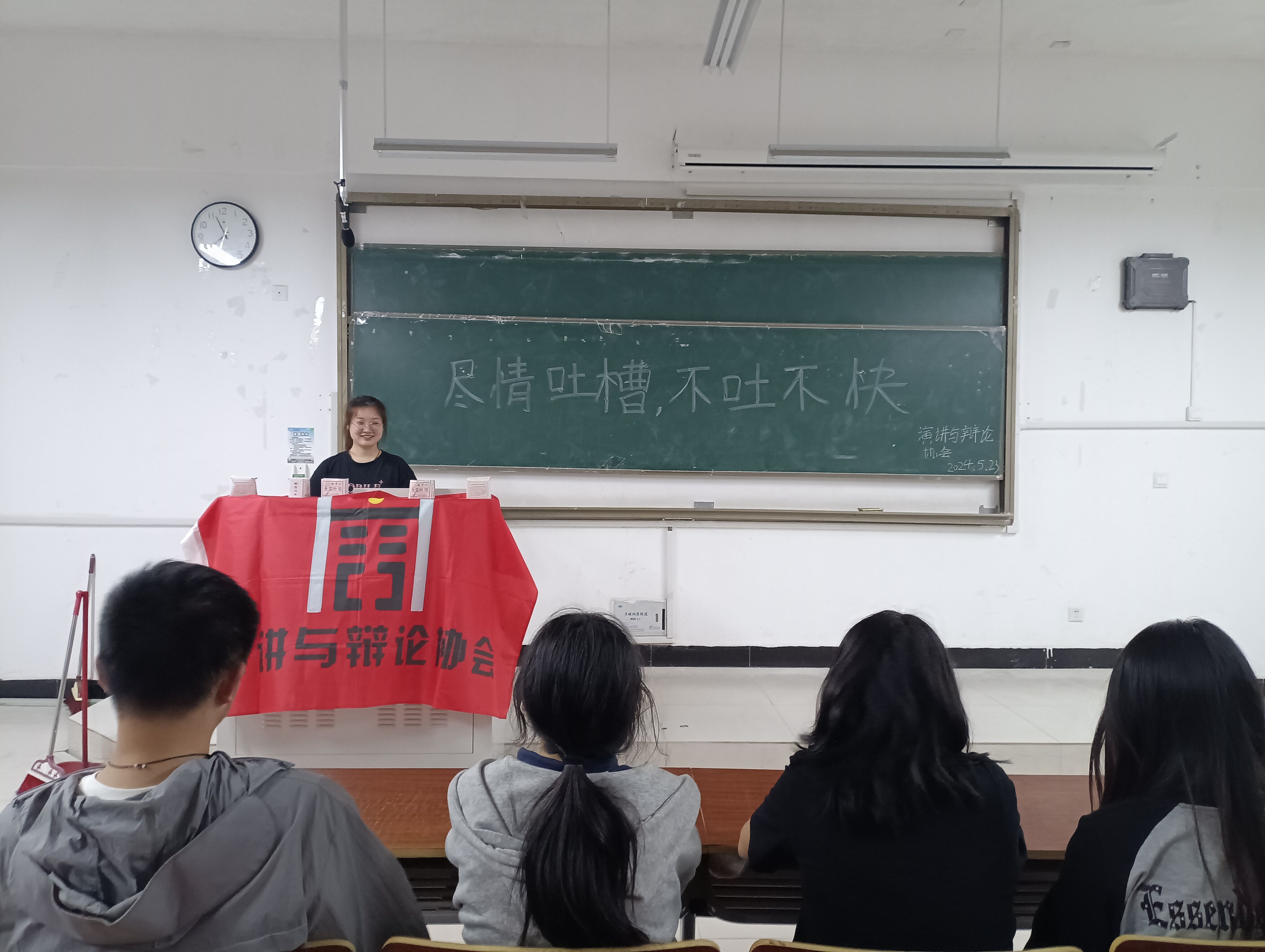 2024.05.23 19:00-21:00演讲与辩论协会成功举办了一场别开生面的“吐槽大会”,旨在提供一个平台让员工们畅所欲言,释放内心的压力与困惑,同时也促进师生之间的理解与沟通。