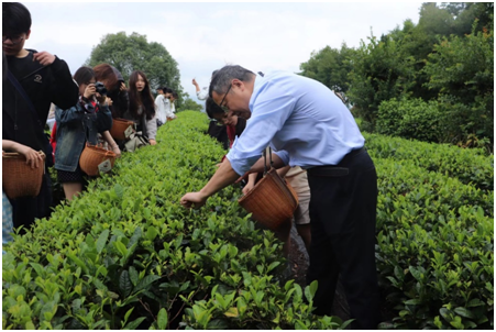 随后他们前往谢裕大茶博园,通过亲自体验采青、杀青、揉捻等手工茶品加工制作环节,了解茶叶品种以及茶叶种植、采摘、制作情况,体验采茶制茶非遗传承技艺。