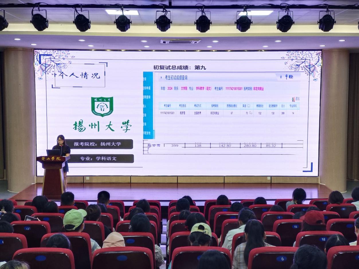 据悉,此次受邀分享的四位同学分别被扬州大学、安徽师范大学、国家税务局六安市金寨县税务局和老员工志愿服务西部计划录取,在上岸的毕业生中具有一定的代表性。本次经验分享会顺利举办,不仅给在校生明确学业规划、科学备考应考发挥积极的导向作用,更为同学们提供一个宝贵的经验交流平台,营造良好的学习备考氛围。
