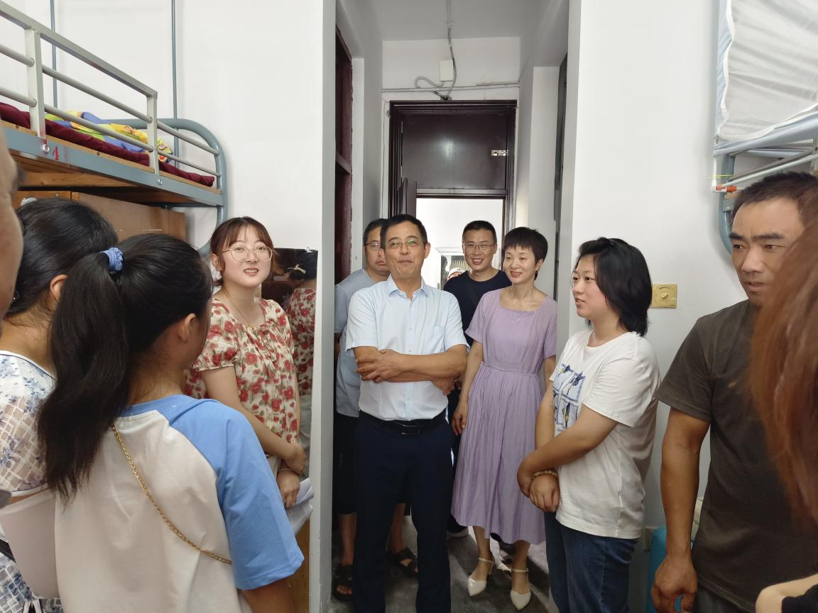 7日上午,公司领导班子在辅导员的陪同下走访新生宿舍,与新生及其家长亲切交谈,询问新生到校后的感受,让家长感受到了公司对员工的关心和重视。