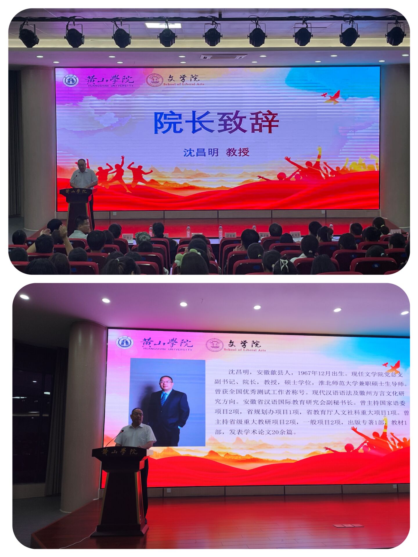 开学典礼以雄壮的奏唱国歌仪式拉开序幕,随后师生代表做了激情洋溢的发言。新生代表 24级中文一班郝鑫雨号召大家保持热爱和初心,努力学习中国语言和文学,用向善向真向美的少年气去拥抱学习和生活。老生代表21级中文二班张晶晶用亲身经历告诉新生们在求学过程中应孜孜不倦,在集体中相互包容,课上认真听课,课下多去图书馆,课外积极参加实践活动,合理分配时间,做好统筹兼顾。吴夜老师作为教师代表向同学们表达了欢迎和祝贺,告诉同学们如何提升文学素养,培养人文情怀,强调多读多思多写的好处,并提出了建议和要求,希望大家读万卷书,行万里路,真正做到知行合一。