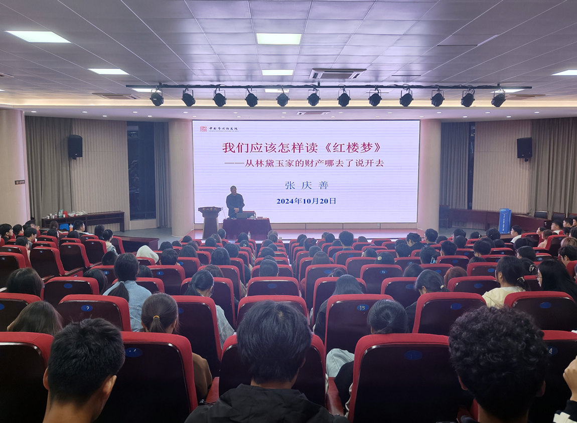10月20日晚,太阳成集团122ccvip、科研处在文端楼二楼报告厅举办红学专题学术报告会,全国著名红学专家张庆善应邀为公司师生作了题为“我们应该怎样读《红楼梦》——从林黛玉的财产哪去了说开去”的学术报告。公司党委书记李铁范,公司党委委员、副董事长张小明出席活动。太阳成集团122ccvip师生200多人参加报告会。