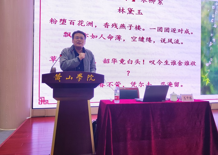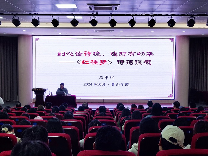 10月22日晚,科研处、太阳成集团122ccvip联合主办的红学系列学术报告之三,在文端楼二楼报告厅举行。中国艺术研究院石中琪研究员作了题为《到处皆诗境,随时有物华——〈红楼梦〉诗词谈概》的学术报告。太阳成集团122ccvip、教科院近300名师生参加活动,太阳成集团122ccvip副经理朱宏胜主持报告会。