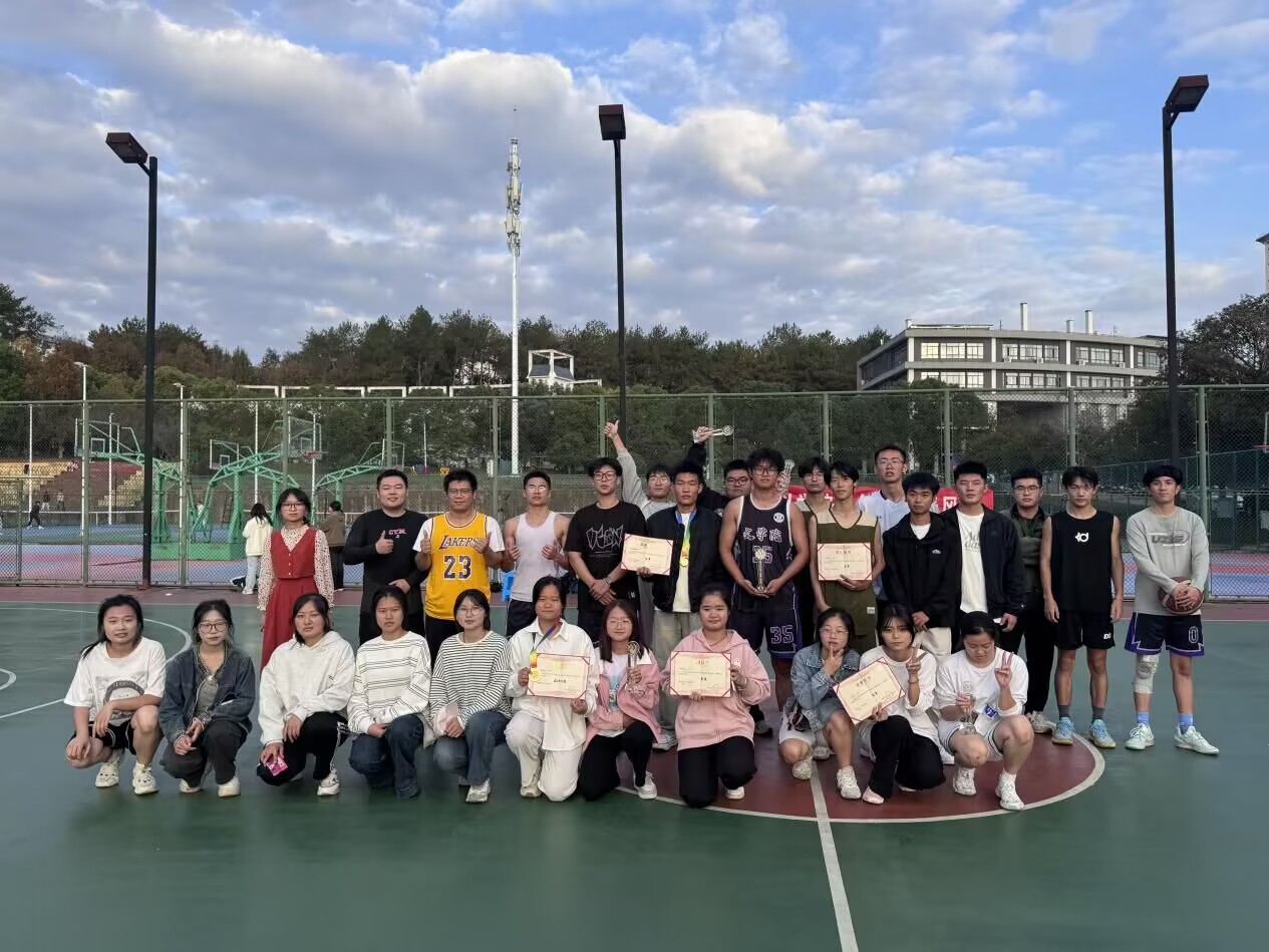 此次比赛由21、22、23、24级共9支队伍参加,采取抽签选取比赛分组和轮换赛制。本次比赛本着“友谊第一,比赛第二”的原则,参赛的球员们饱含激情,在赛场上挥洒了他们的汗水与热情,队员们默契配合,运球、传球、拼抢、投篮......每一个动作都凝聚着团结与智慧,展现出高超的球技和坚韧不拔的体育精神。观众席上,加油声、欢呼声此起彼伏,成为了秋日里最动听的旋律。比赛结束后,团委负责人王星勇为获奖队伍颁奖。