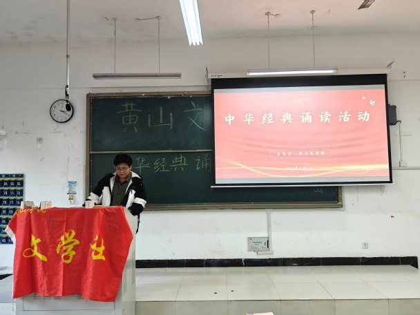 为引领广大青年深入学习和宣传贯彻党的二十届三中全会精神,更好地传承和弘扬中华优秀传统文化,并在广老员工中培育和践行社会主义核心价值观,展现公司员工健康向上、朝气蓬勃的精神风貌,2024年11月6日,由黄山文学社举办的“古韵流芳,经典传唱”中华经典诵读活动在文端楼2207圆满完成。