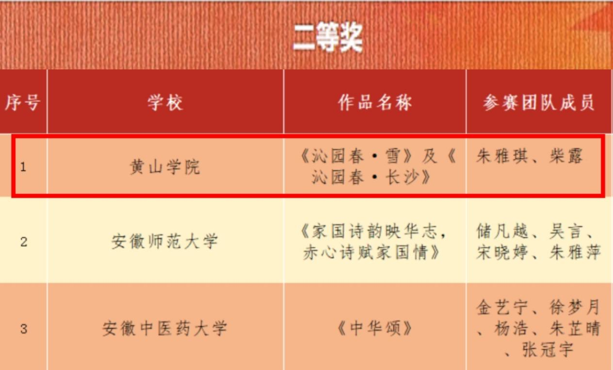 11月20日,公司22中文1班朱雅琪、22汉教班柴露凭借“沁园春长·沙”和“沁园春·雪”两部作品在安徽省高校古典诗词朗诵比赛中荣获二等奖。